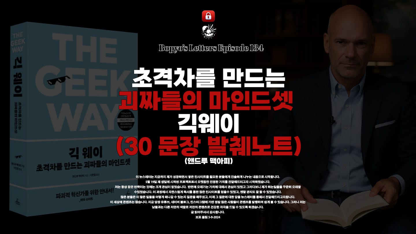 만약 여러분의 조직이 정체되어 있다고 느끼거나, 더 빠른 학습과 성장을 원하신다면, 오늘 보표레터에서 전해드리는 ‘긱 웨이’의 핵심 30개 문장을 깊이 읽어보시길 바랍니다. 조직과 개인의 잠재력을 폭발시킬 새로운 관점을 얻게 될 것입니다.