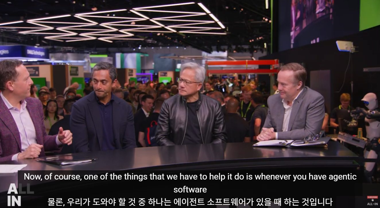 오늘 보표레터에서는 단순한 챗봇을 넘어 우리가 일하고 존재하는 방식 자체를 뒤바꿀 거대한 패러다임의 전환, 그 중심에 서 있는 엔비디아(NVIDIA) 젠슨 황(Jensen Huang)의 통찰을 다루어보려 합니다. 최근 그가 ALL IN PODCAST에 출연하여 1시간정도 대담한 내용이 있는데, 이 시대를 살아가는 우리들이라면 꼭 읽어보면 좋을 내용이여서 공유합니다.