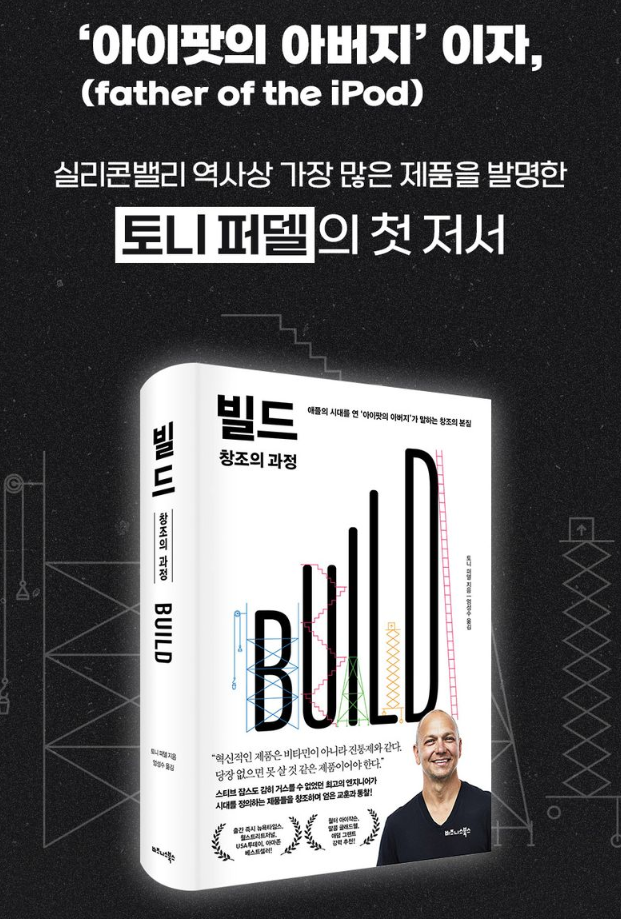 이런 상황에서 우리가 꼭 읽어야 할 책들은 창의적인 사고를 길러주거나 창의적인 사람들이 집필한 책이라고 생각합니다. 실리콘밸리 역사상 가장 많은 제품을 발명했다고 평가받는 토니 퍼델의 '빌드'가 바로 그런 책입니다.