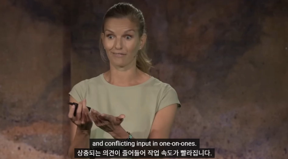 하지만 그녀는 이러한 행동이 팀 전체를 얼마나 느리고 비효율적으로 만드는지 지적합니다. 그녀가 경험한 한 팀의 대화는 우리에게 많은 것을 시사합니다.
