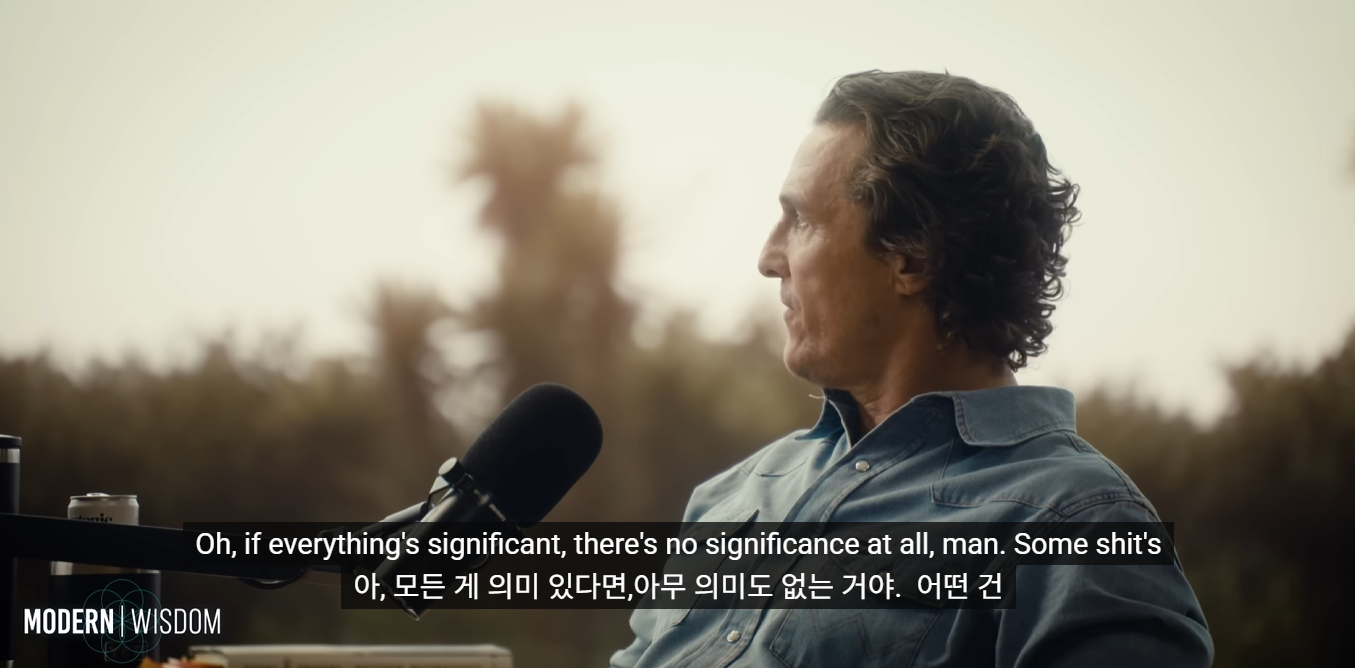 맥커너히는 ‘과잉사고(Overthinking)’를 멈추는 독특한 방법으로 “자신이 생각하는 과정을 녹음해서 다시 들어보라”고 조언합니다. 그 이유는 간단합니다. 객관적으로 자신의 생각을 듣게 되면, 우리가 얼마나 사소한 것들에 거대한 의미를 부여하며 에너지를 낭비하고 있는지 깨닫게 되기 때문입니다.