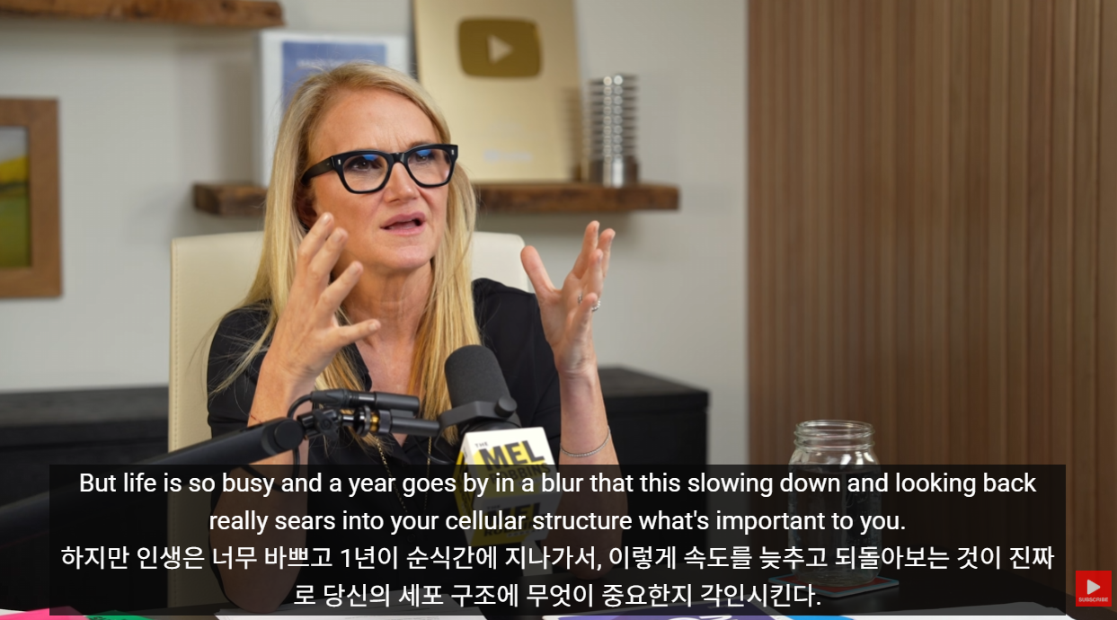 여러분의 앨범과 달력은 거짓말을 하지 않습니다. 멜 로빈스는 자신의 기록을 보며 뼈아픈 교훈을 얻었습니다. 일에서는 엄청난 성취를 이뤘지만, 정작 자신의 건강은 돌보지 못했다는 사실, 그리고 친구들과의 시간이 턱없이 부족했다는 사실을 말이죠.