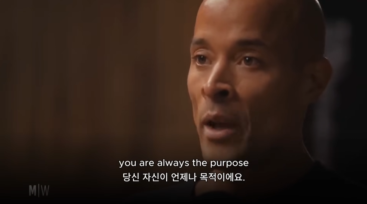 그렇다면 우리를 움직이게 하는 궁극적인 동력은 어디에서 찾아야 할까요? 고긴스는 우리 모두가 놓치고 있는 진실을 짚어냅니다. “목적은 항상 그 자리에 있습니다. 우리를 떠난 적이 없죠. 왜냐하면, 그 목적 자체가 바로 ‘당신’이기 때문입니다.”