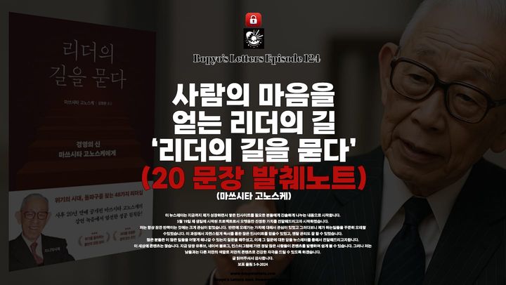 사람의 마음을 얻는 리더의 길 '리더의 길을 묻다' -20문장 발췌노트 (마쓰시타 고노스케) 08 Jul 2025 • 14 min read • Paid Members Bopyo Park