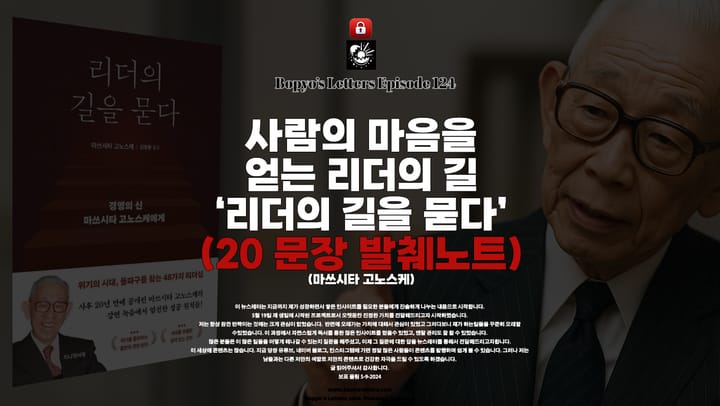 지금 여러분의 자리에서 외로움을 느끼거나, 방향을 잃었다고 생각하신다면, 혹은 더 나은 리더가 되기를 갈망하신다면 오늘 보표레터가 전해드리는 마쓰시타 고노스케의 지혜에 귀 기울여 보시길 바랍니다. 단순한 지식이 아닌, 여러분의 삶을 단단하게 지탱해 줄 '태도'를 배우게 되실 겁니다.