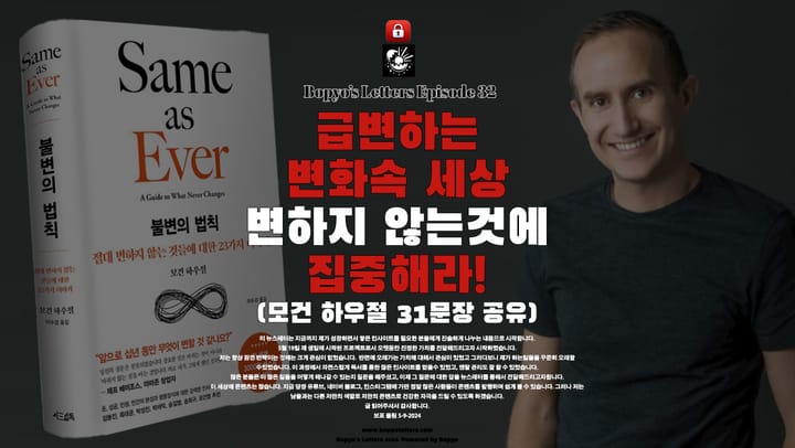 불변의 법칙은 이런 변하지 않는 가치에 대해서 다루는 내용입니다. 요즘처럼 많은 것들이 빠르게 변화하는 이 시점에 우리에게 꼭 필요한 책이라고 생각합니다. 그리고 제가 읽었을 때 많은 인사이트를 느끼며 비지니스 관점에도 많은 영향을 받았기에 그 중에서 가장 영감을 준 31 액기스만 발췌하여 보표레터의 구독자님들에게 제 생각과 함께 공유합니다!