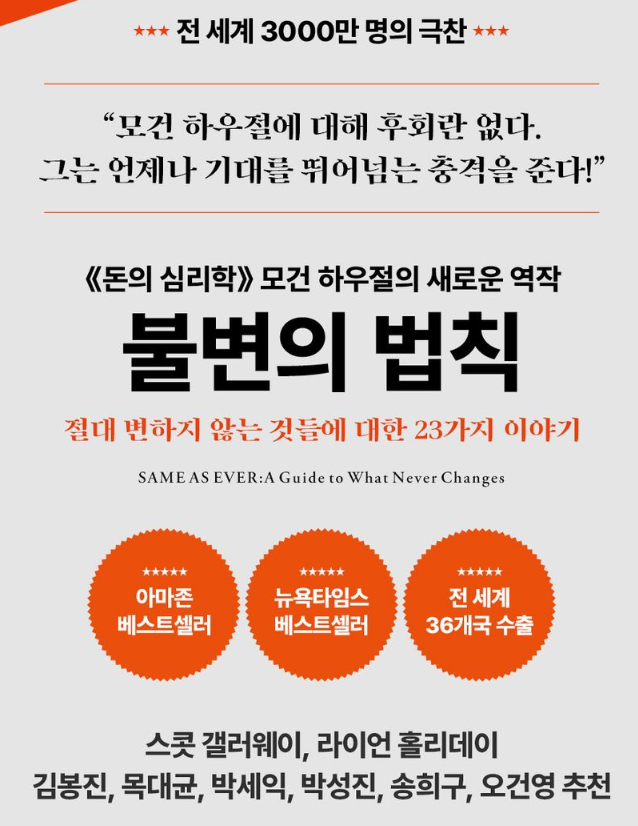 불변의 법칙은 이런 변하지 않는 가치에 대해서 다루는 내용입니다. 요즘처럼 많은 것들이 빠르게 변화하는 이 시점에 우리에게 꼭 필요한 책이라고 생각합니다. 그리고 제가 읽었을 때 많은 인사이트를 느끼며 비지니스 관점에도 많은 영향을 받았기에 그 중에서 가장 영감을 준 31 액기스만 발췌하여 보표레터의 구독자님들에게 제 생각과 함께 공유합니다!