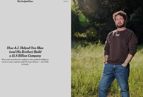 최근 세계적인 창업가이자 투자자인 그렉 아이젠버그(Greg Isenberg)가 밤잠을 설치며 주목하고 있는 'AI 시대의 23가지 거대한 물결'에 대해 이야기해 보려 합니다. 그런데 만약 이것이 그저 실리콘밸리 몽상가들의 먼 미래 예측처럼 들리신다면, 며칠 전 뉴욕타임스(NYT)가 집중 조명하며 전 세계 비즈니스 씬을 발칵 뒤집어놓은 한 사람의 '실제 이야기'를 먼저 들려드리고 싶습니다.
