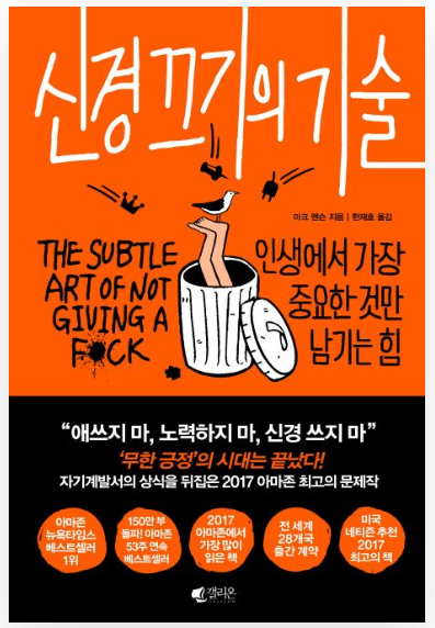 마크 맨슨의 신경끄기의 기술을 읽으면서 여러분이 좀 더 집중해야 하는것들에 초점을 맞춰보시길 바랍니다.