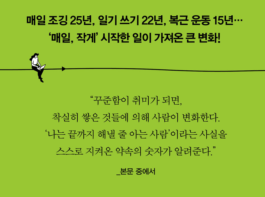 양은 언제든지 조절할 수 있지만, 절대로 생략하지 말자는 게 저의 꾸준함 철학입니다. 나름 철학이라고 하니 거창해 보이긴 하지만, 꼭 그렇게 지키려고 합니다. 이런 철학이 생길 수 있었던 것은 제 어린 시절 경험 때문입니다.